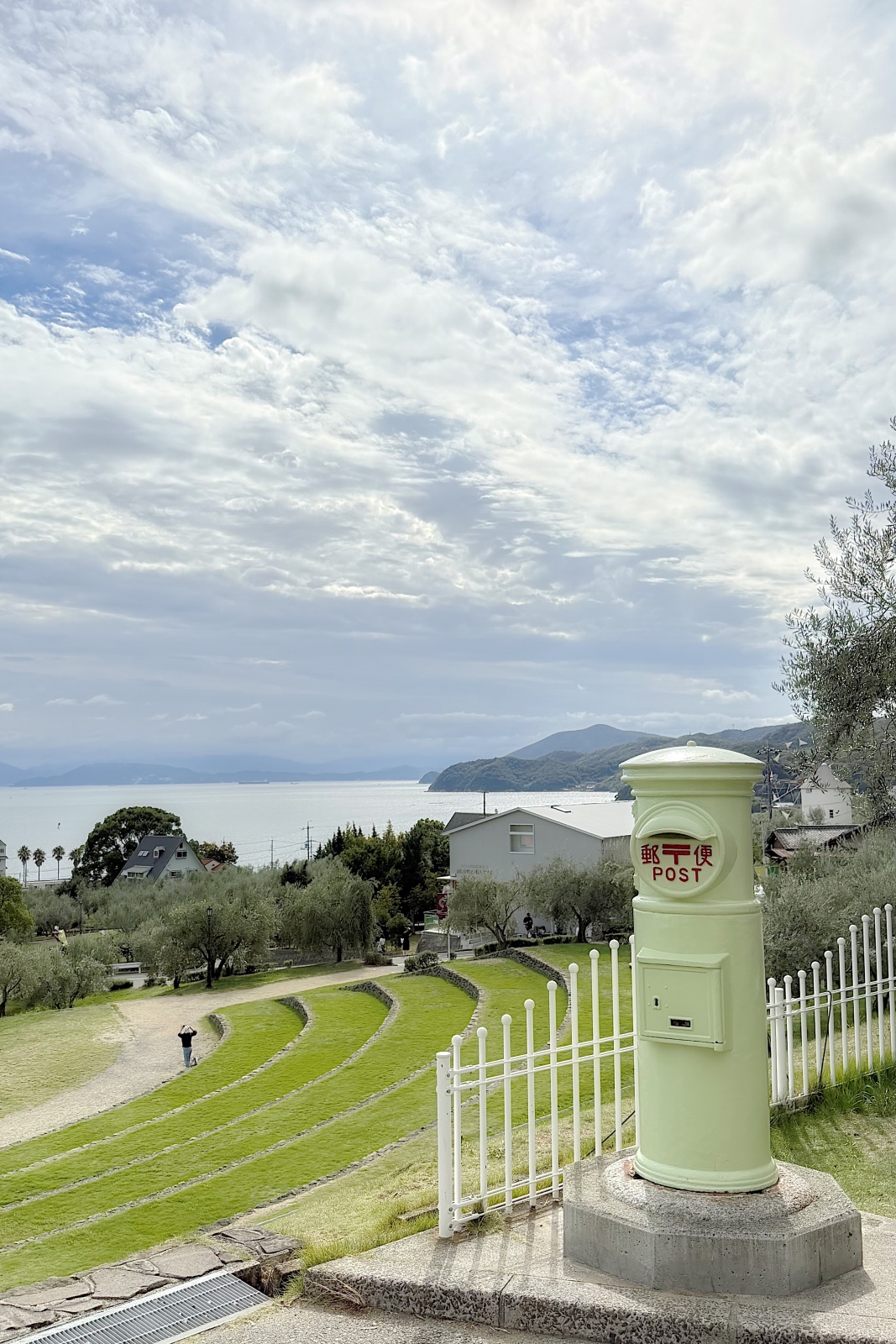 備忘録 オリーブオイル!ない!!明日忘れずに買わにゃー買う時間あるかな…🤔 てか、小豆島に行ってオリーブオイル買わなかった自分を呪うわよ…何やってんの、ホント!笑 写真はオリーブ🫒色な郵便ポストです ☺︎