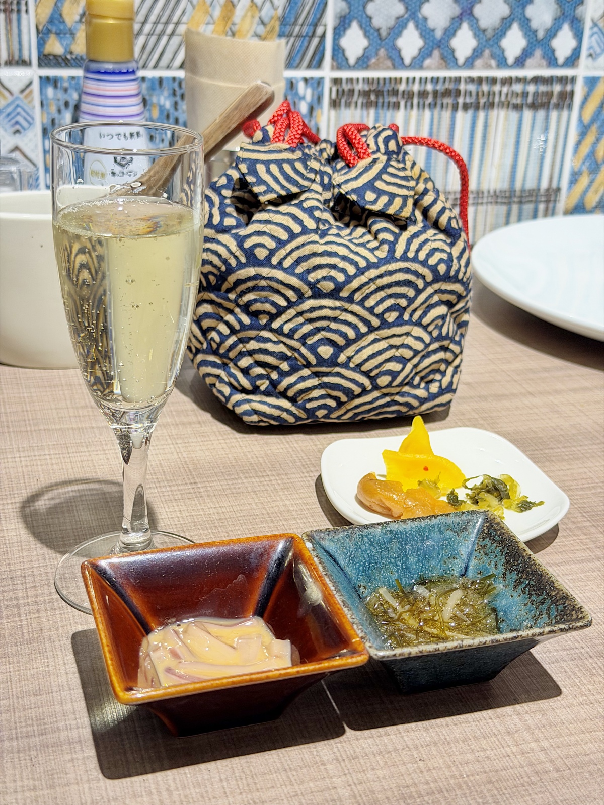 スパークリングと塩辛で始める朝、最高か。