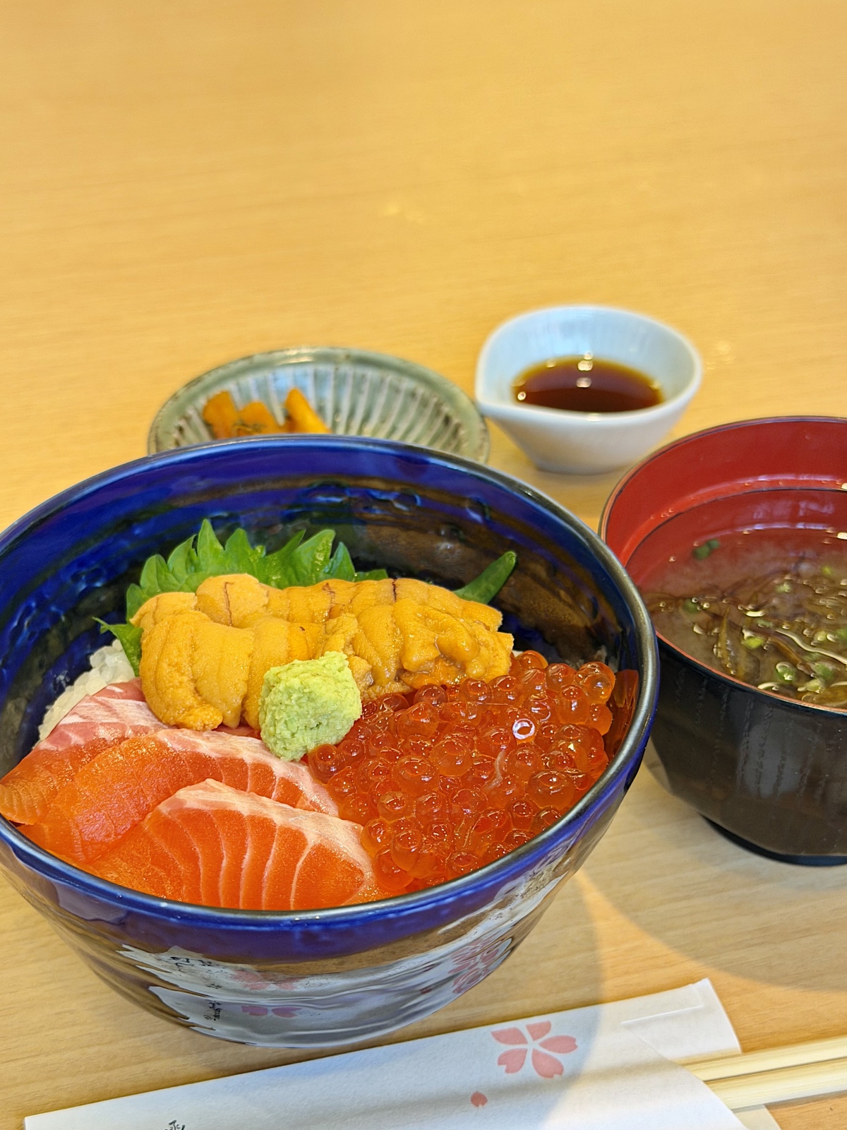 ファーストミッション 昨日、函館についてまずしたことは、このお店に駆け込むこと(電車到着がラストオーダー時刻ギリだったの、で、滑り込みセーフ😌) ここ最近ずーっと、ウニが食べたかったんですー。(ふるさと納税でずっとウニチェックしてたからかもしれない😅)でも、だからといって、ウニ一色のウニ丼にするかとゆーと、ま、そこまで好きなわけではなくてですね(むしろそこまでいくと苦手かも😅)、バランス的にはこのくらいの量でちょうどいいかなって。で、このウニが。素晴らしく美味しかったー♡函館着いて早々に達成感!でした☺︎