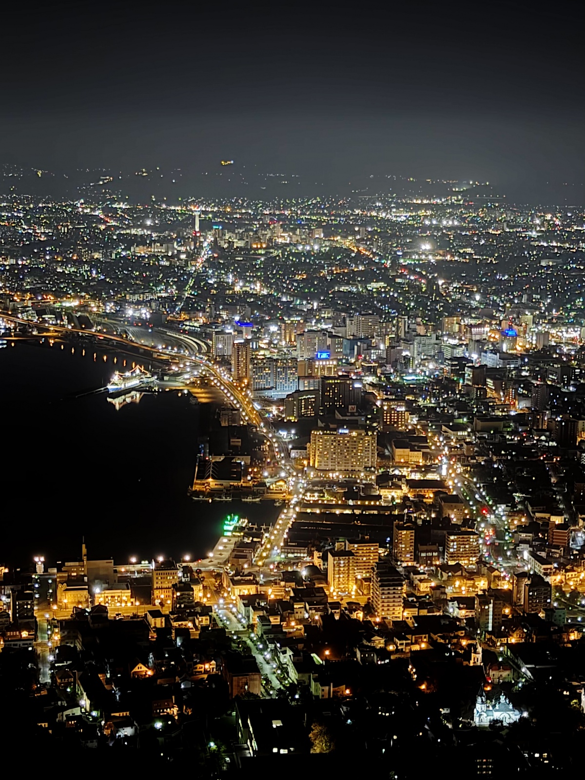右下に、ライトアップされたハリストス正教会。ミニチュアみたいでかわいい。