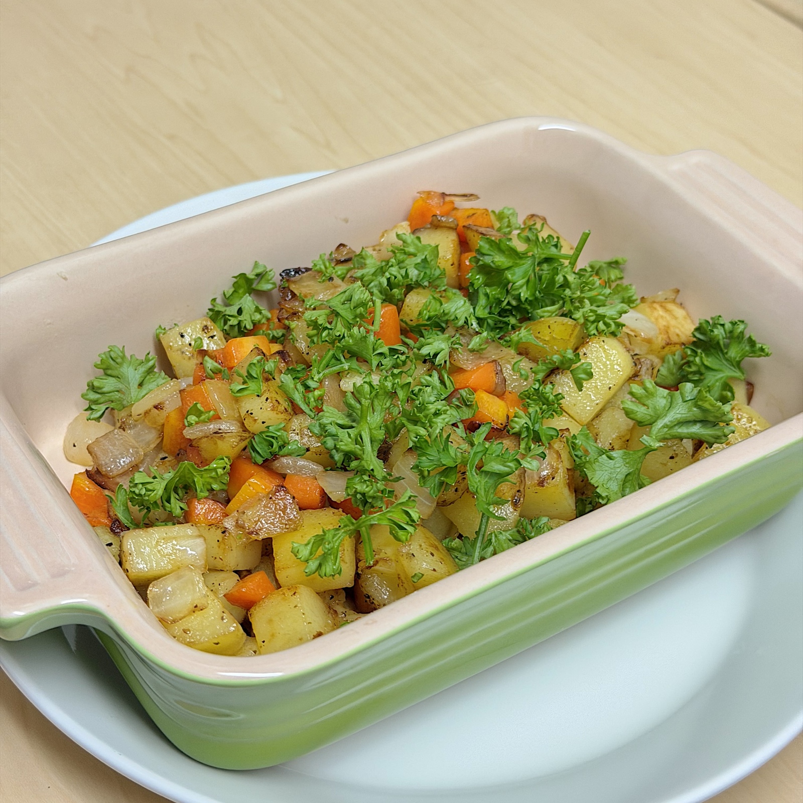 じゃがいもとにんじんと玉ねぎを炒めただけのものなのですが、じっくり火を通すことで、野菜の甘みが引き出されるみたい。今日のにんじんは、コーンのように甘い!