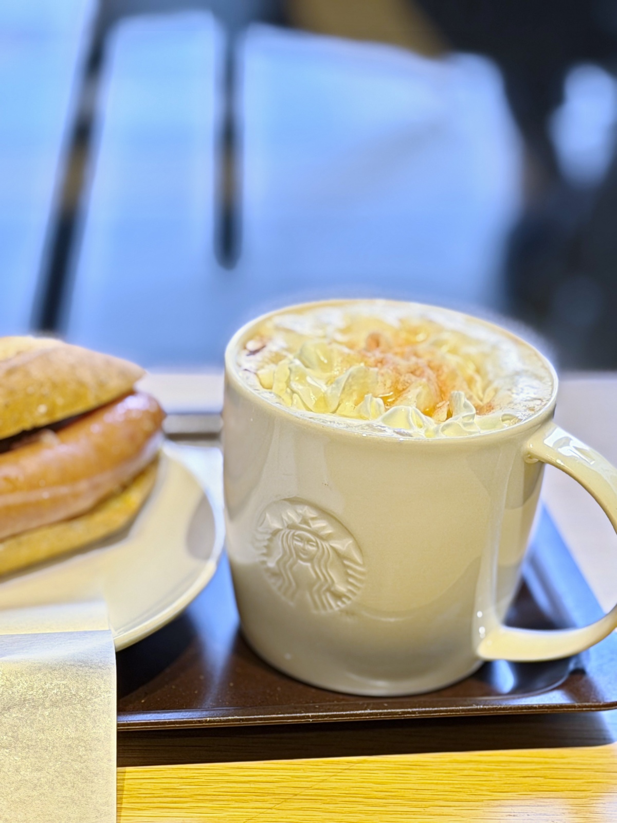 無性に温かいものが欲しく、アールグレイのラテにしてみた。初めて飲んだけど、これ美味しいー、甘いものが欲しいときに、いいかも。